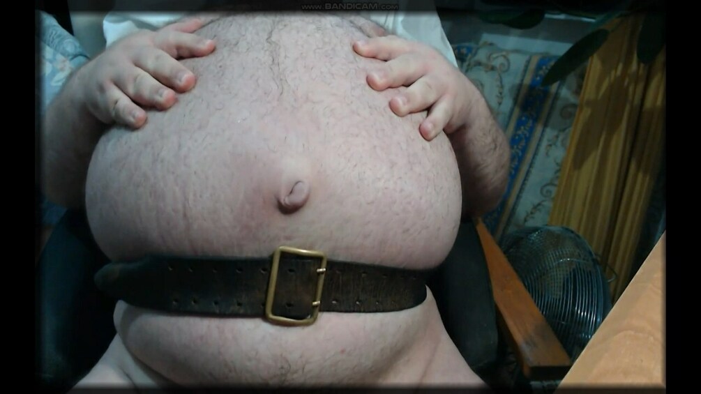 his wet and oil belly growing Bigger and Bigger!